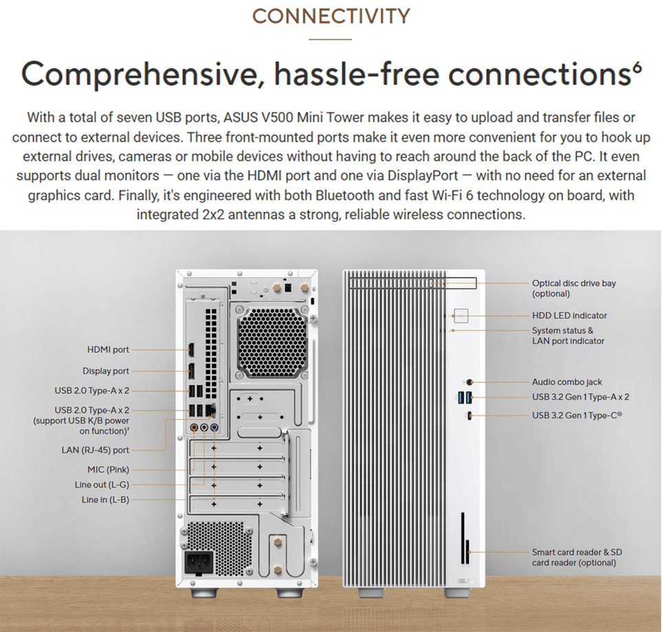 • Asus V500MV-13420H067WS Mini Tower Desktop PC ( i5-13420H, 8GB, 512GB SSD, Intel, W11, HS+M365 )2