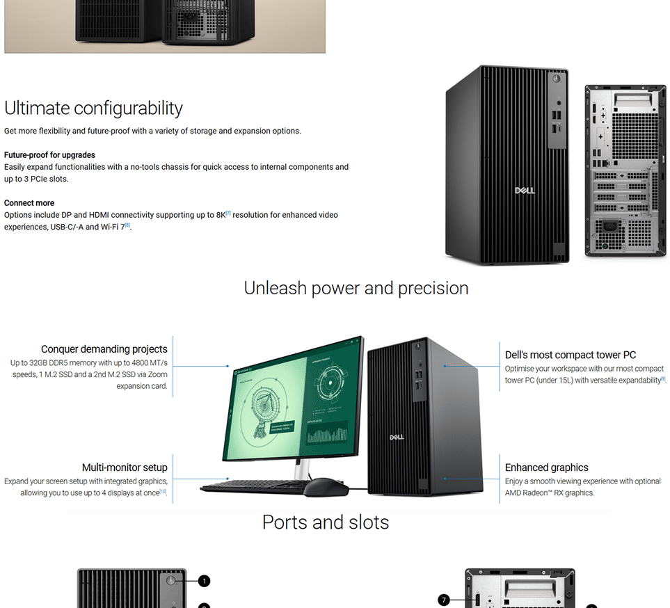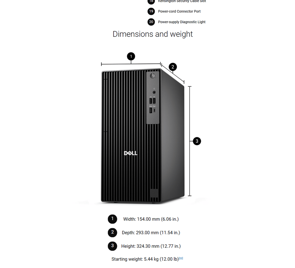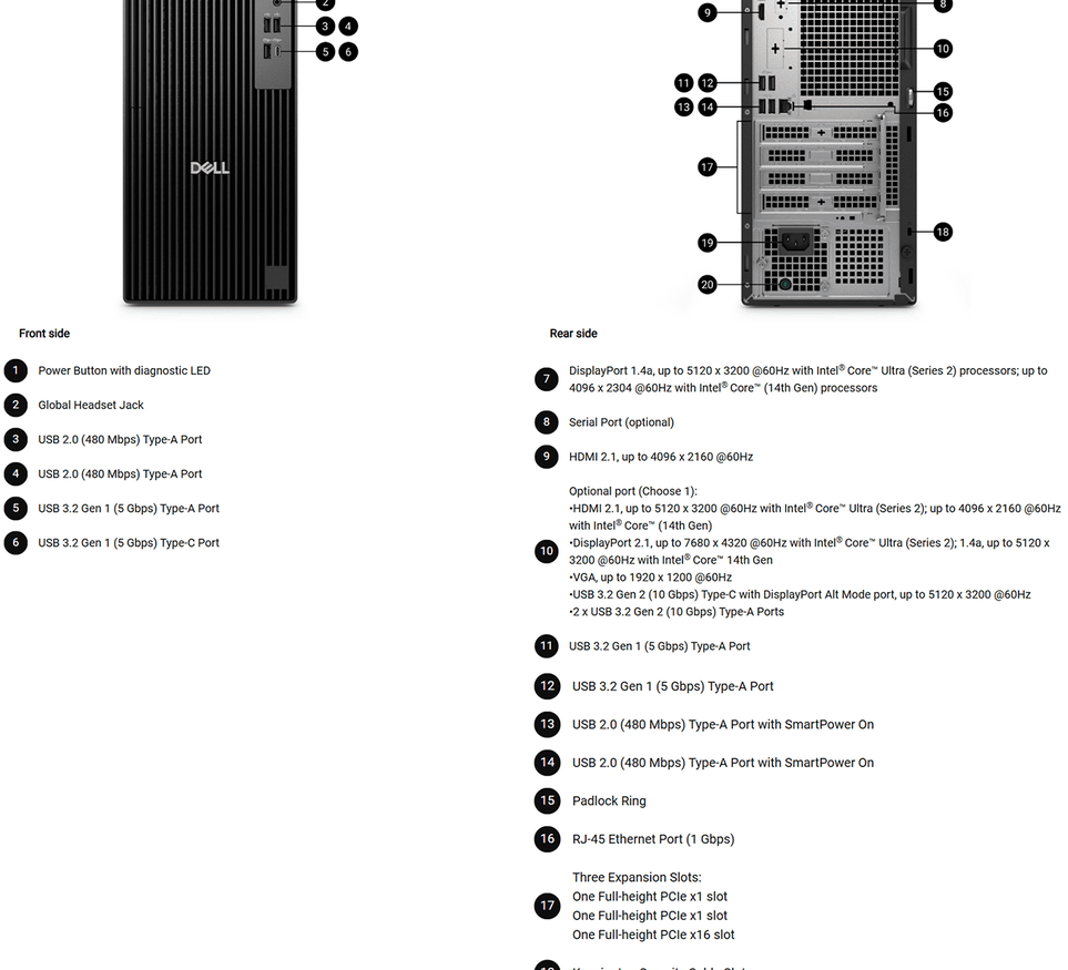 Rear (Computers shipped with an Intel® Core™ 300/i3 14100/i5 14500 vPro®/i5 14600 vPro®/i7 14700 vPro® processor)