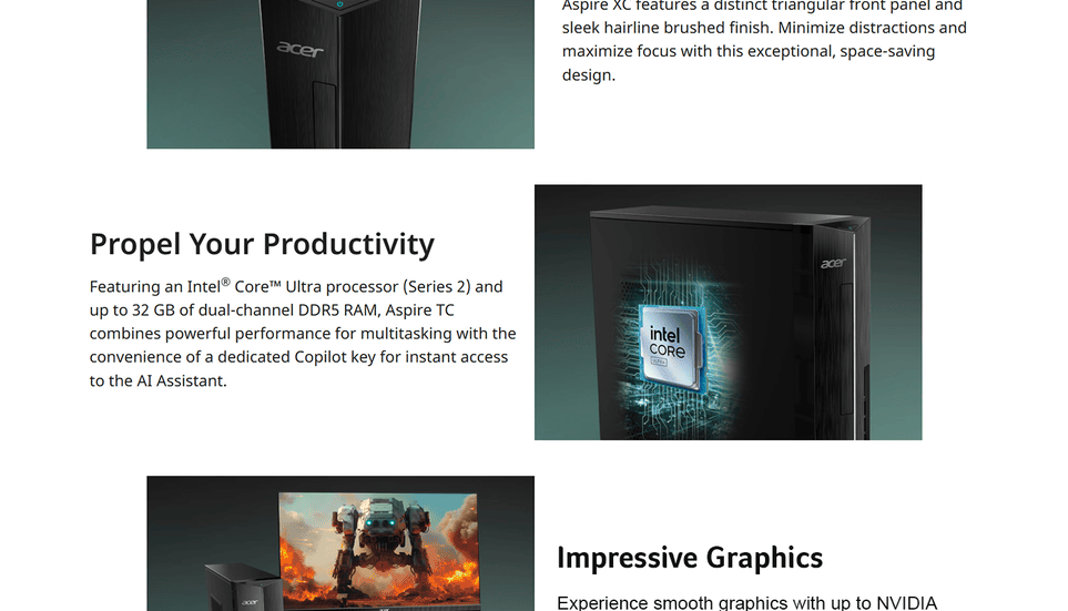 • Acer Aspire XC1860-265W11S Desktop PC Black ( CU7-265, 8GB, 512GB SSD, Intel, W11, HS+M365 )0