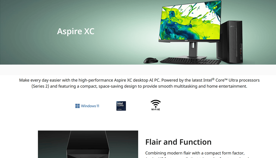 • Acer Aspire XC1860-265W11S Desktop PC Black ( CU7-265, 8GB, 512GB SSD, Intel, W11, HS+M365 )2