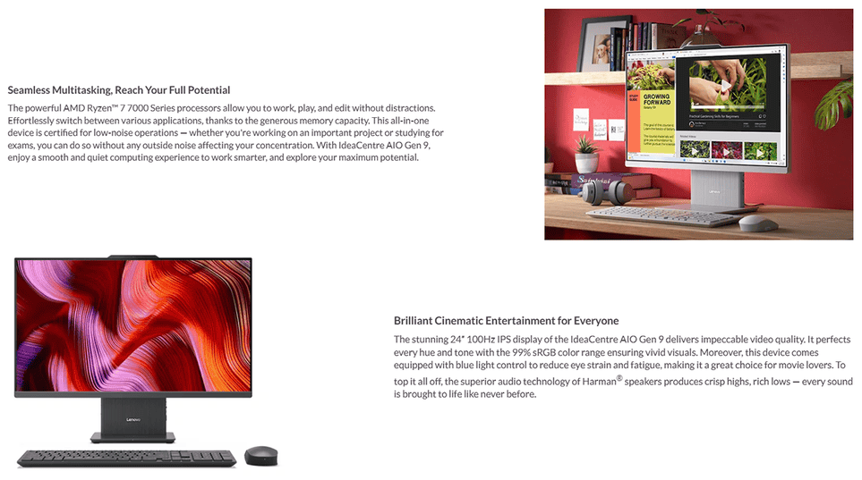 Lenovo IdeaCentre AIO 24ARR9 F0HR009XMI 23.8'' FHD Touch All-in-One Desktop PC ( R7-7735HS, 16GB, 512GB SSD, ATI, W11, HS+M365 )4