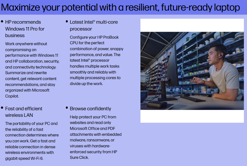 2 x USB Type-C® 20Gbps signaling rate (USB Power Delivery 3.0, DisplayPort™ 1.4, HP Sleep and Charge)