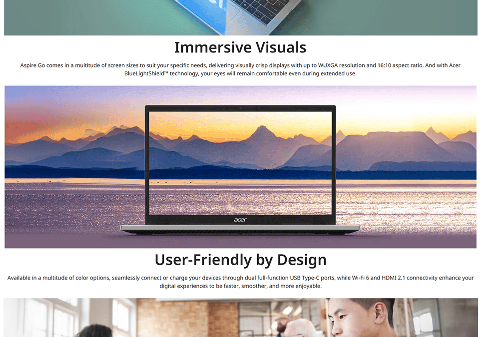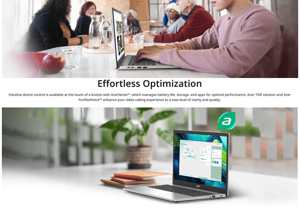Acer Purified. Voice technology with AI noise reduction in dual built in microphones.