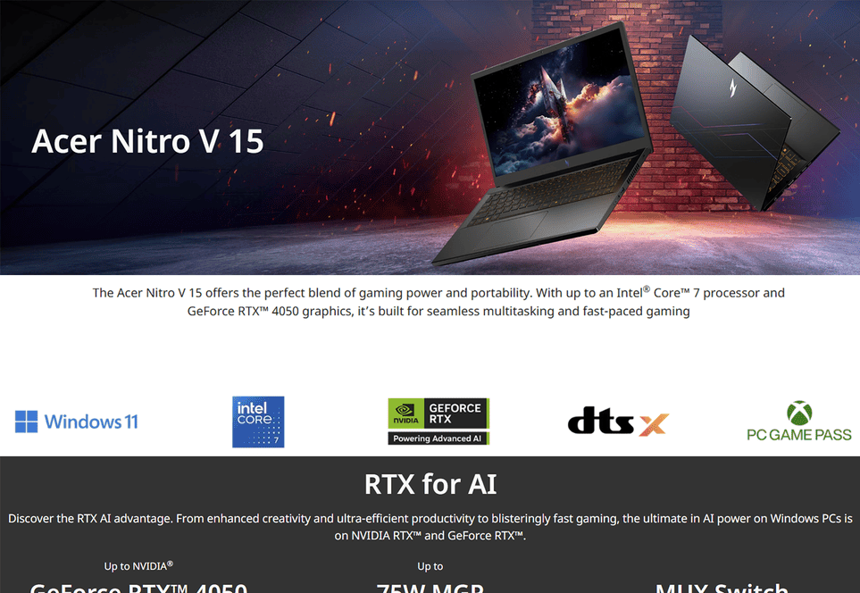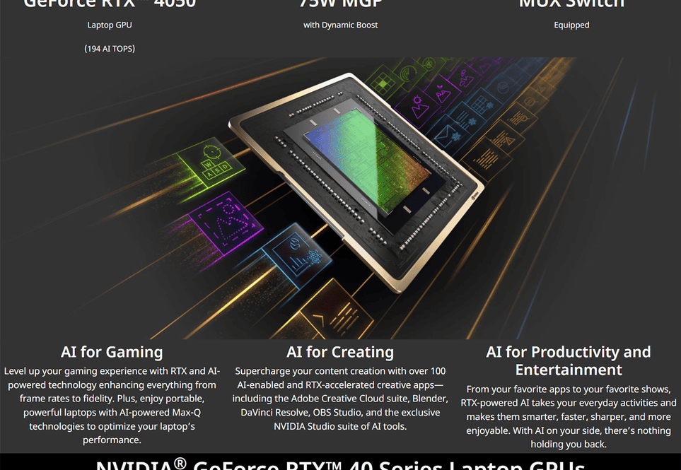 NVIDIA® GeForce RTX™ 4050 with 6 GB of dedicated GDDR6 VRAM