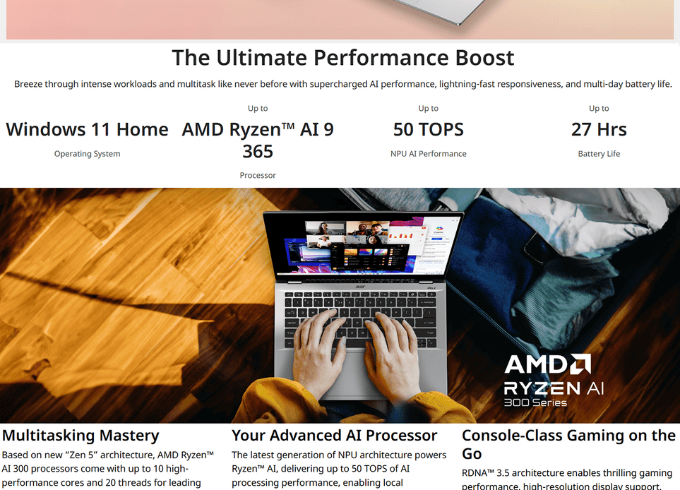 14.0" display with IPS (In-Plane Switching) technology, WUXGA 1920 x 1200, high-brightness (400nits) Acer ComfyView™ LED-backlit TFT LCD, 16:10 aspect ratio, color gamut sRGB 100% with multi-touch,