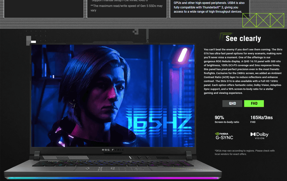1x Type-C USB 4 with support for DisplayPort™ / power delivery / G-SYNC (data speed up to 40Gbps)