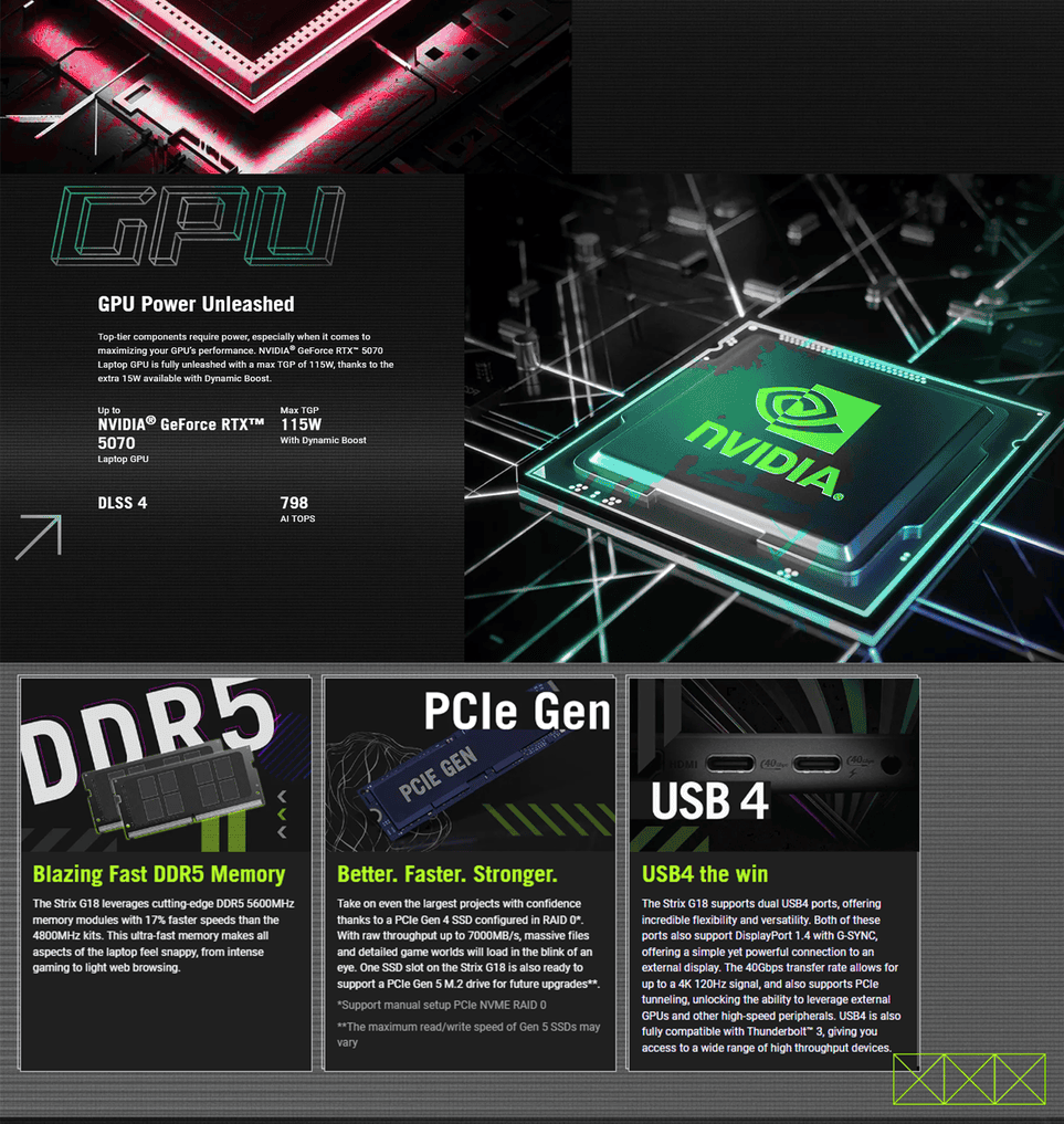 1x Type-C USB 4 with support for DisplayPort™ / power delivery / G-SYNC (data speed up to 40Gbps)