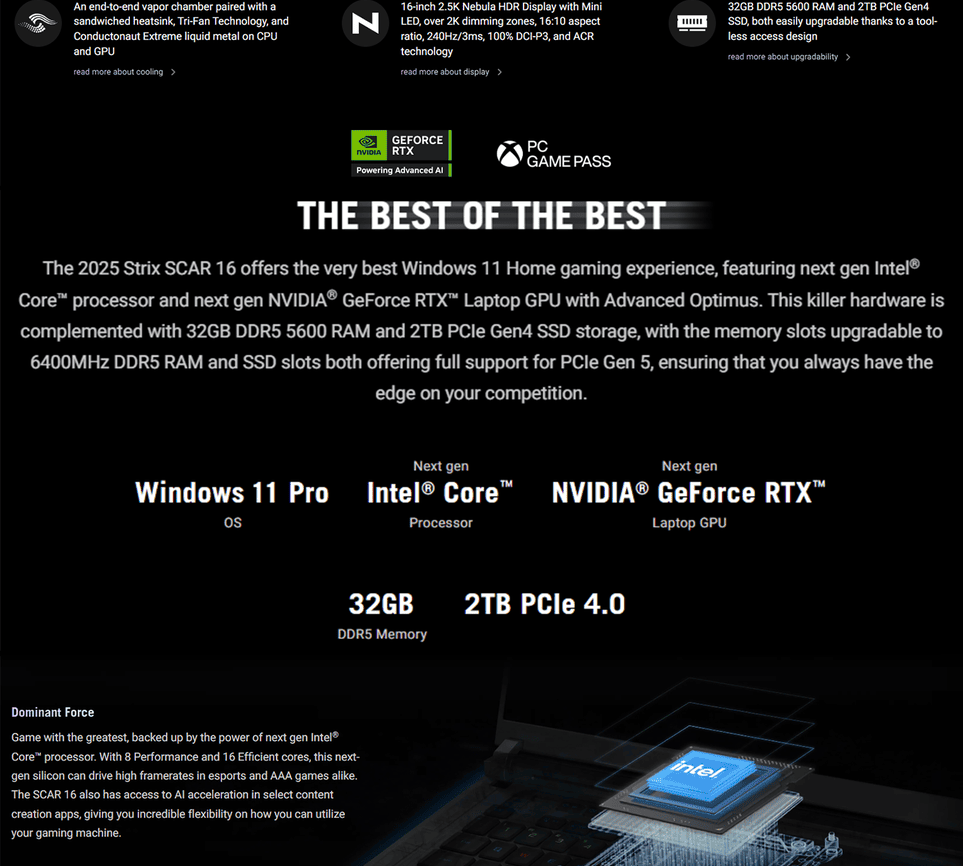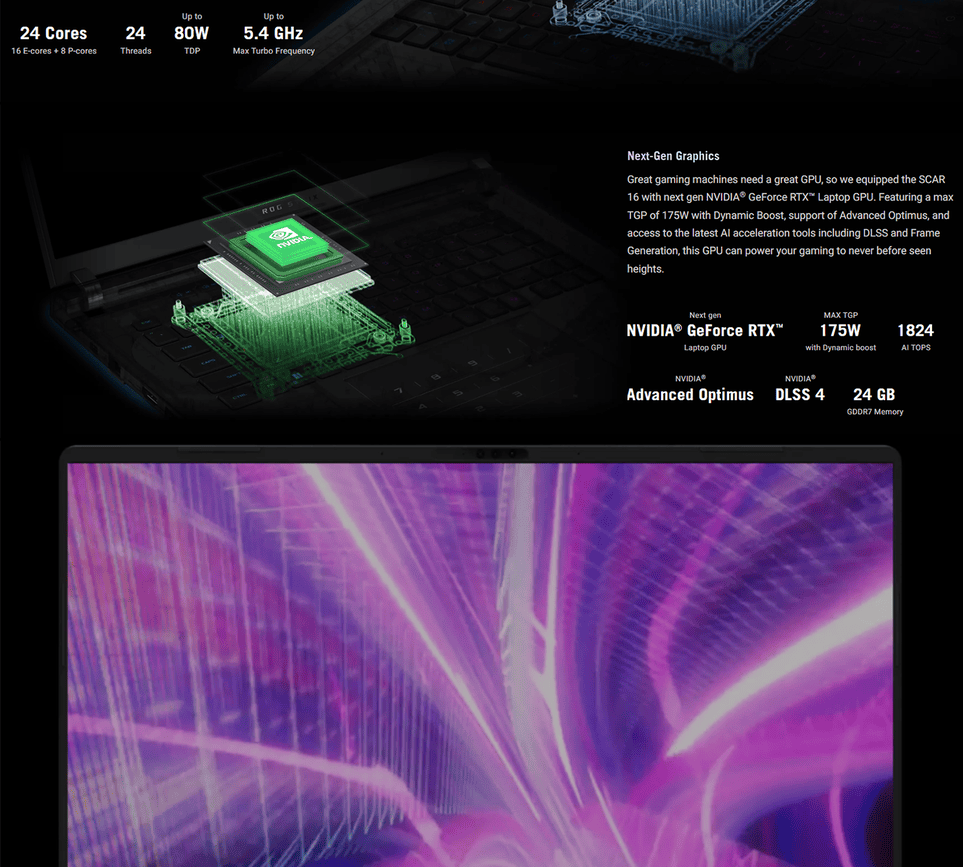 2x Thunderbolt™ 5 with support for DisplayPort™ / power delivery / G-SYNC