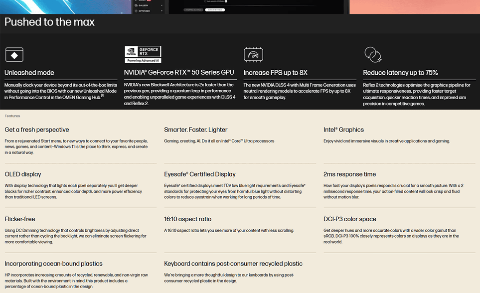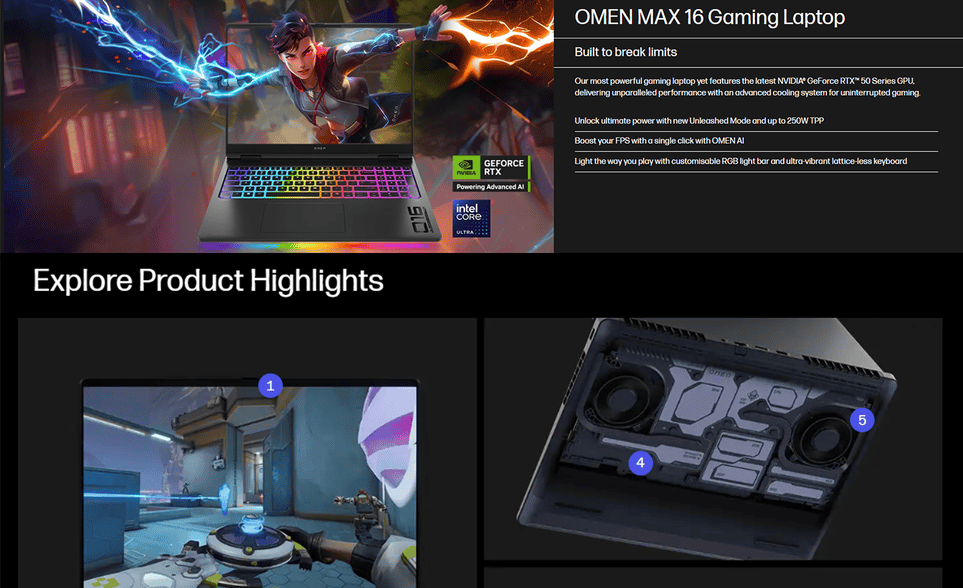 HP OMEN MAX 16-ah0144TX 16" WQXGA OLED 240Hz Gaming Laptop ( NVIDIA GeForce RTX™ 5060, CU7-255HX, 32GB, 1TB SSD, W11 )