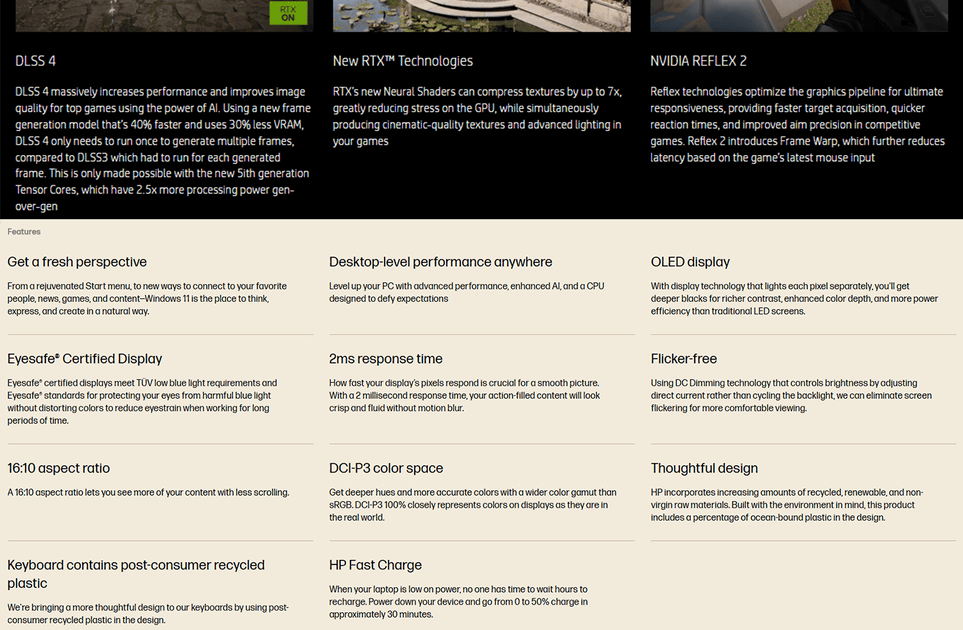 16" diagonal, 2K (1920 x 1200), 60-165 Hz, 3 ms response time, IPS, micro-edge, anti-glare, Low Blue Light, 400 nits, 100% sRGB