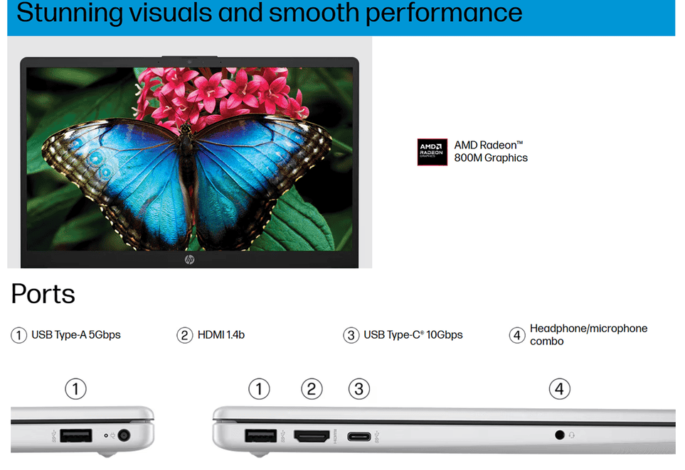 1 x USB Type-C® 10Gbps signaling rate (USB Power Delivery 3.1, DisplayPort™ 1.4, HP Sleep and Charge)