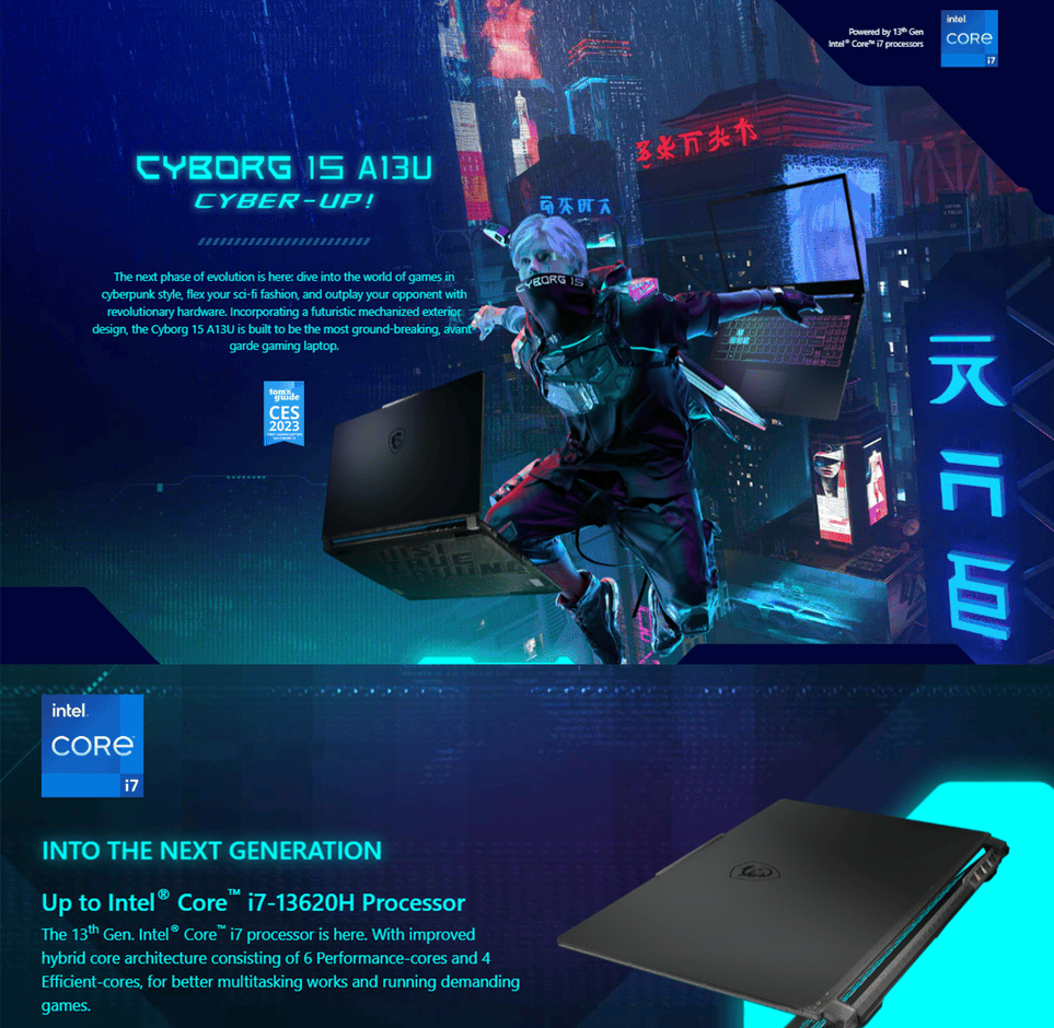 • MSI Cyborg 15 A13UC-2065 15.6'' FHD Gaming Laptop ( i7-13620H, 16GB, 512GB SSD, RTX3050 4GB, W11 )1
