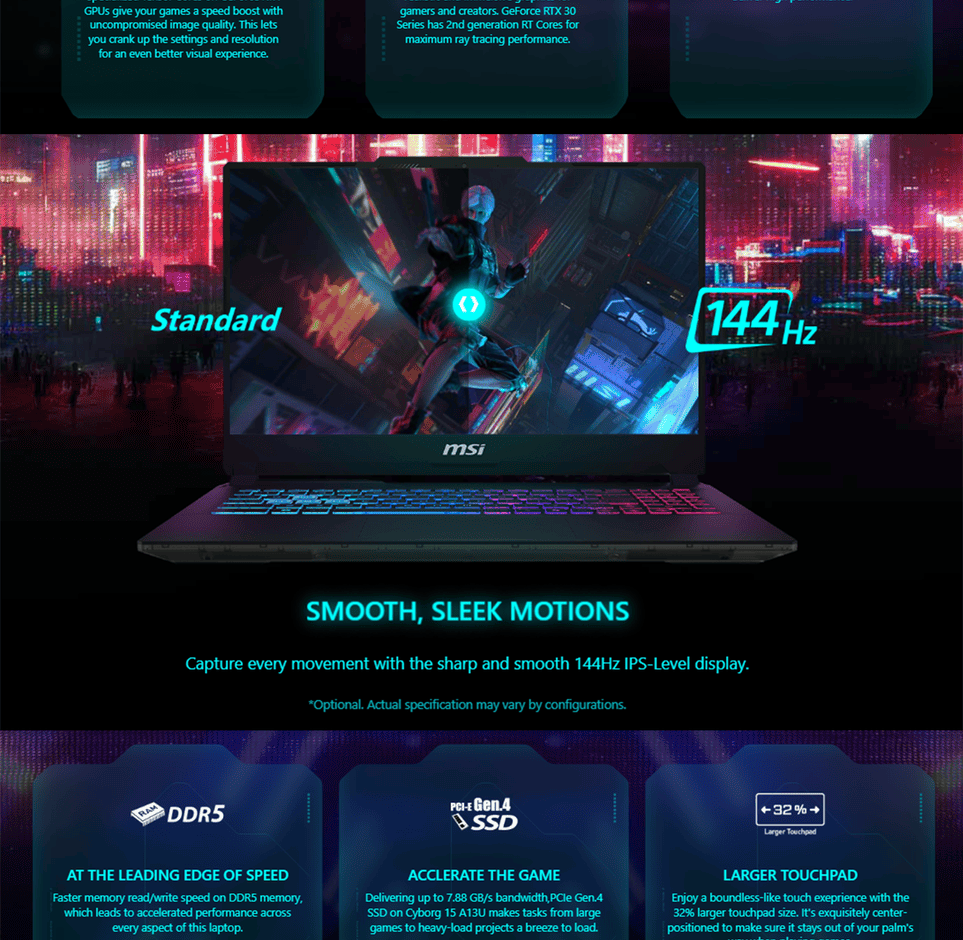 • MSI Cyborg 15 A13UC-2065 15.6'' FHD Gaming Laptop ( i7-13620H, 16GB, 512GB SSD, RTX3050 4GB, W11 )3