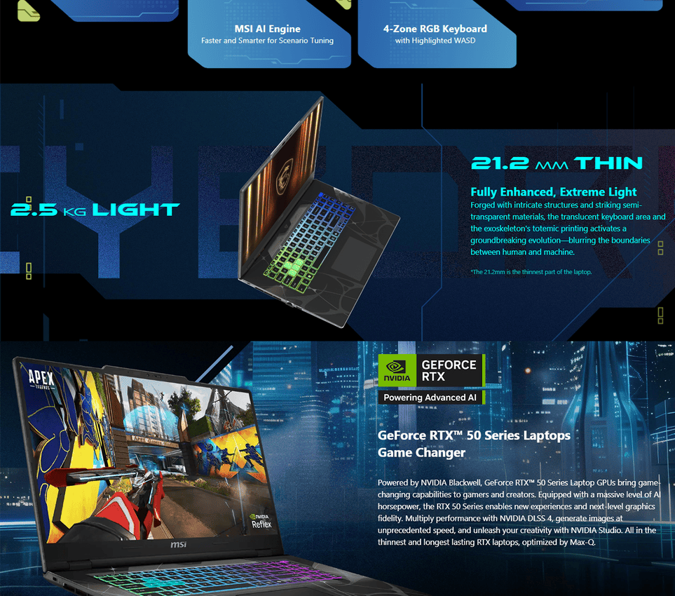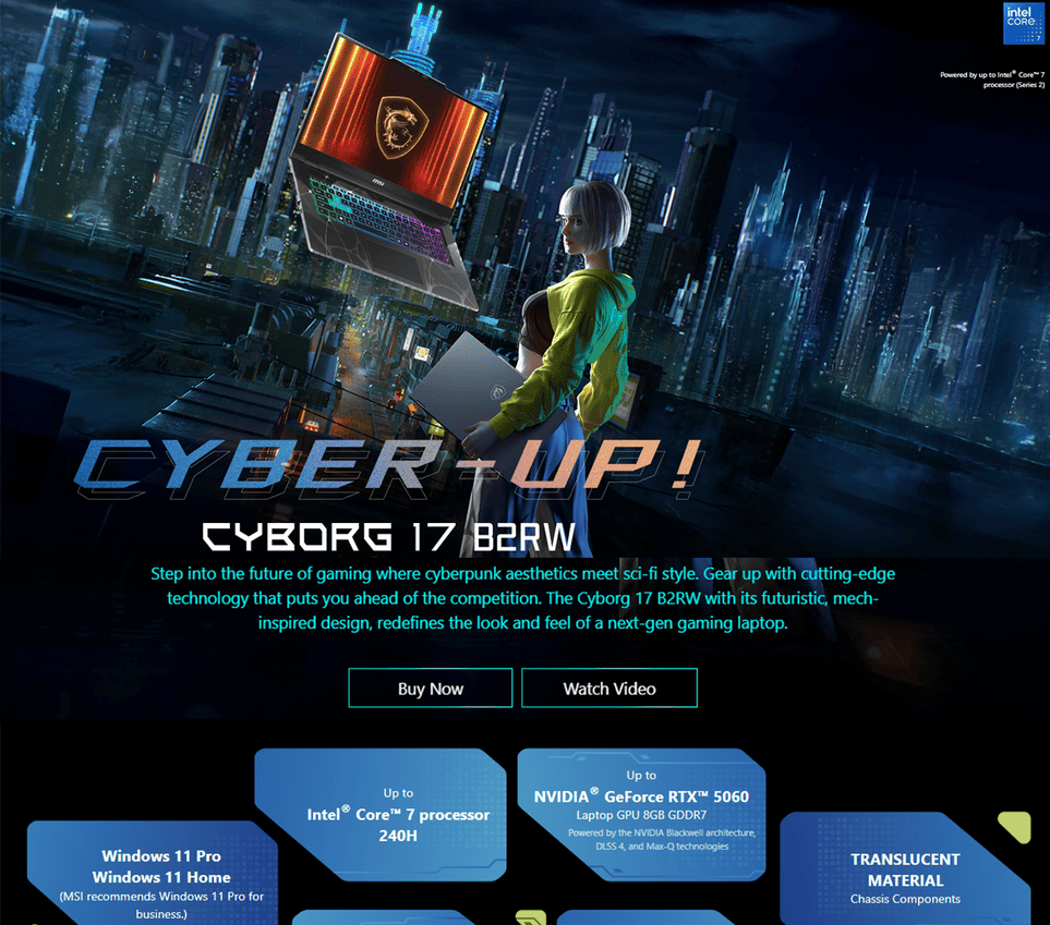 • MSI Cyborg 17 B2RWFKG-037 17.3'' FHD Gaming Laptop ( C7-240H, 16GB, 512GB SSD, RTX5060 8GB, W11 )1