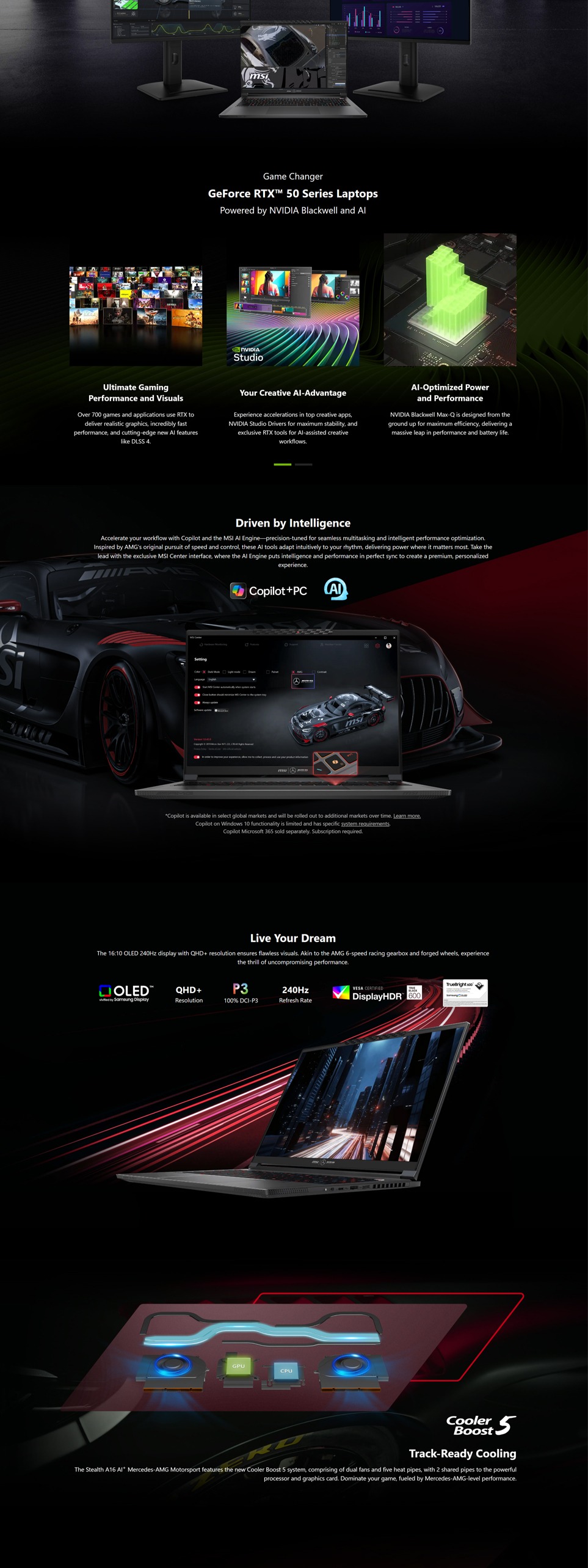 MSI Stealth A16 MercedesAMG AI+ A3XWGG-037 16'' QHD+ Gaming Laptop ( Ryzen AI 9 HX 370, 32GB, 2TB SSD, RTX5070 8GB, W11 )1