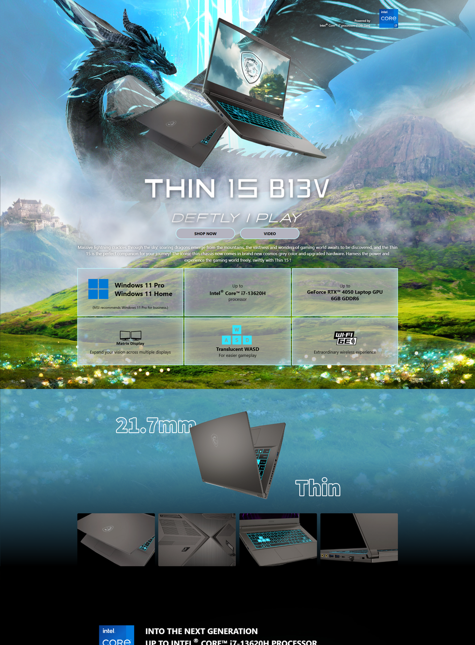 • MSI Thin 15 B13VE-3216 15.6'' FHD Gaming Laptop Cosmos Gray ( i5-13420H, 8GB, 512GB SSD, RTX4050 6GB, W11, HS )3