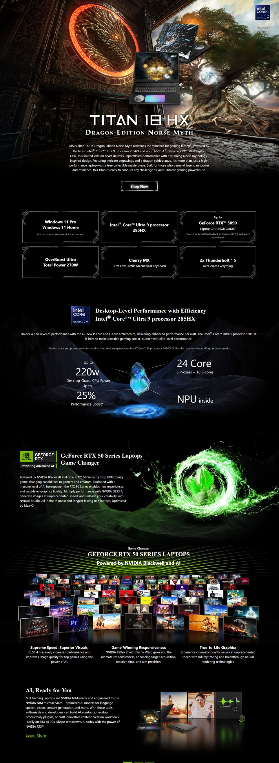 MSI Titan 18 HX Dragon Edition Norse Myth A2XWJG-046 18" UHD+ Gaming Laptop (NVIDIA® GeForce RTX™ 5090,CU9-285HX,96GB,6TB,W11)