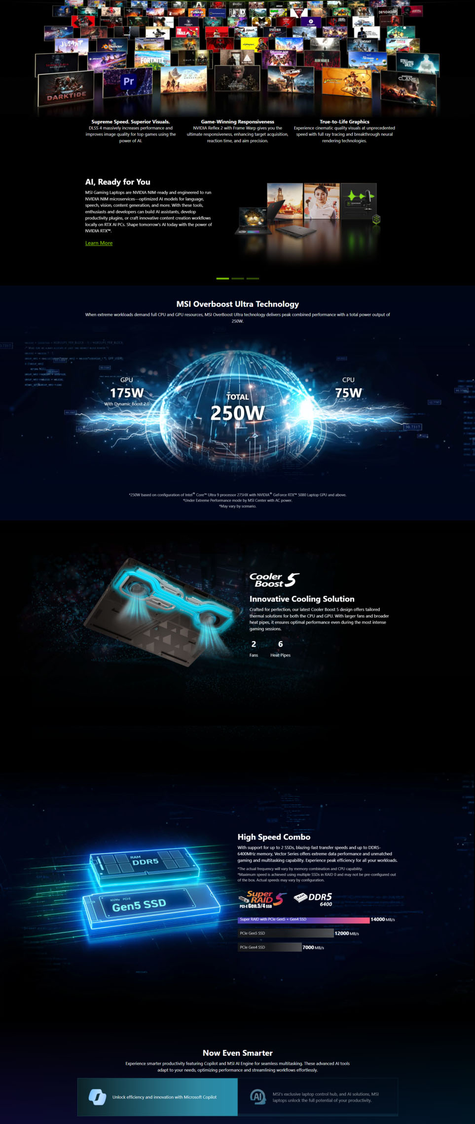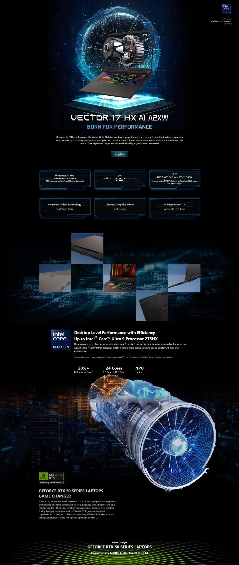 MSI Vector 17 HX AI A2XWJG-074 17" QHD+ Gaming Laptop ( NVIDIA® GeForce RTX™ 5090, Ultra 9 275HX, 32GB, 2TB SSD, W11 )