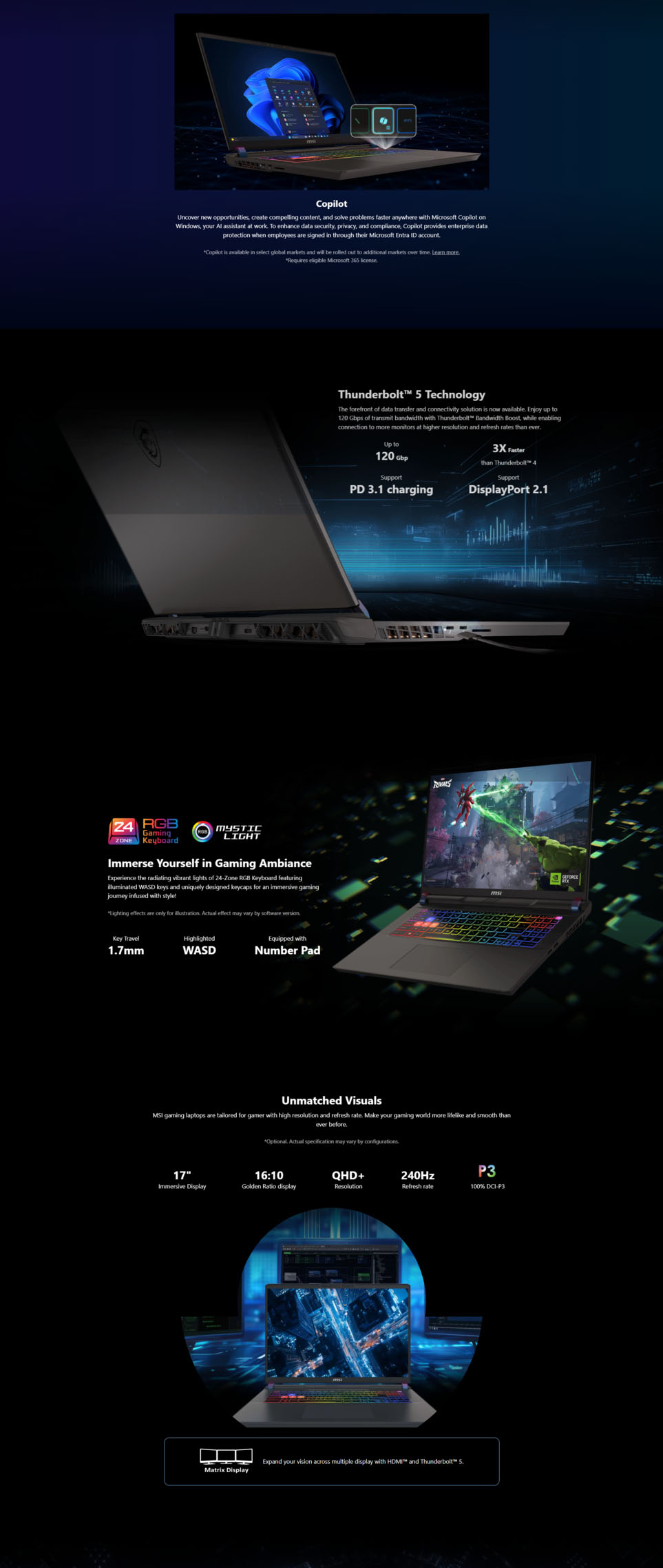 • 17" QHD+(2560x1600), 240Hz Refresh Rate, IPS-Level, 100% DCI-P3(Typical)