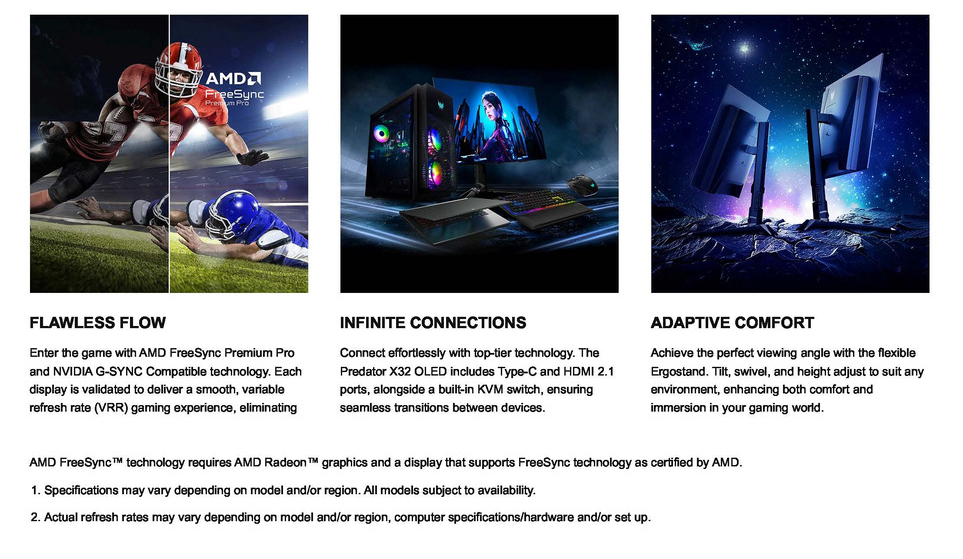 • Acer Predator X32 X3 31.5'' 4K UHD OLED 240Hz Gaming Monitor ( Speaker, HDMI, DP, USB, 3 Yrs Wrty )3