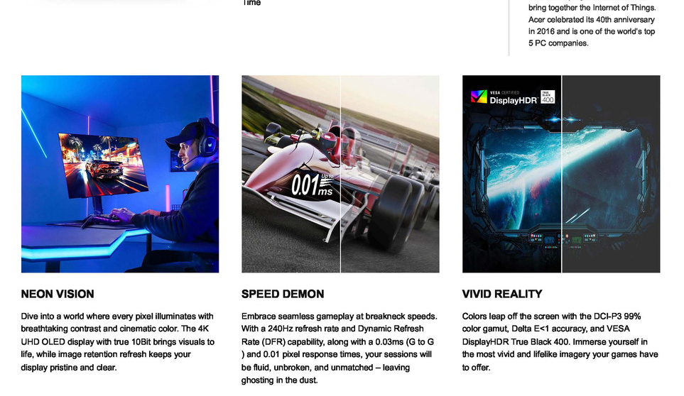 • Refresh Rate: 240Hz @ 4K; 480Hz @ FHD