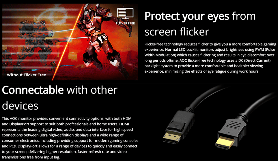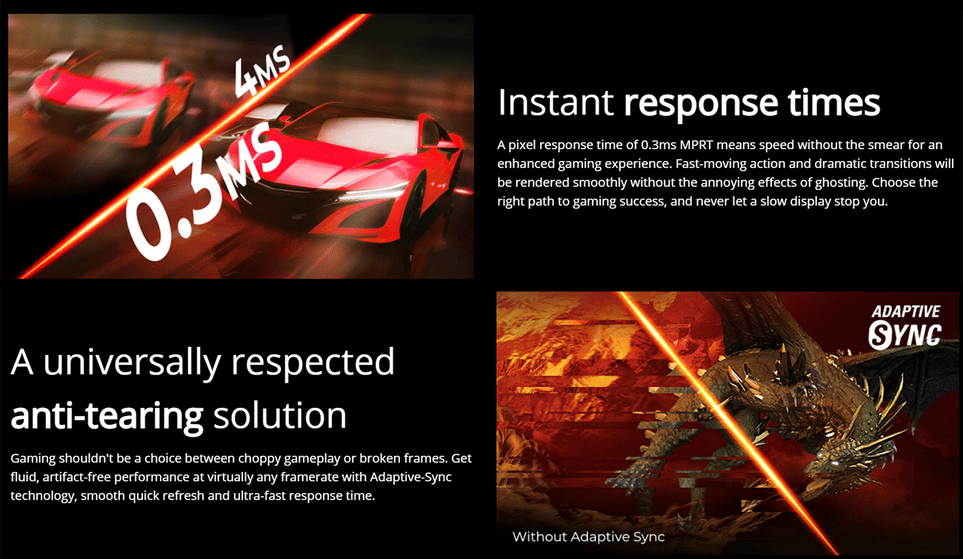 • Response Time: 1ms (GTG) / 0.3ms (MPRT)
