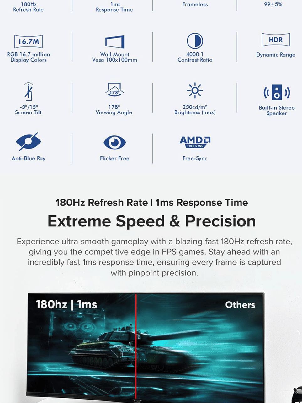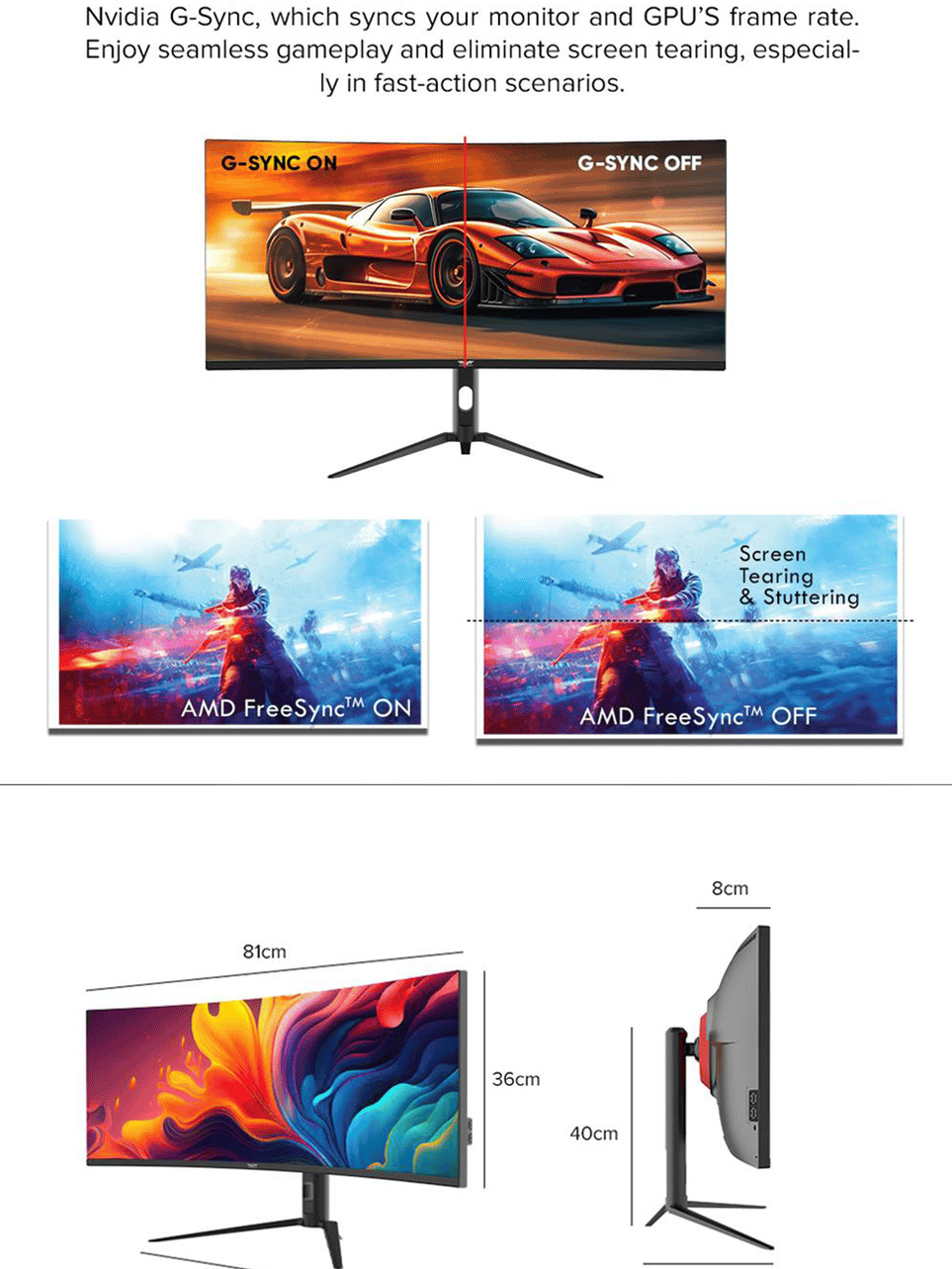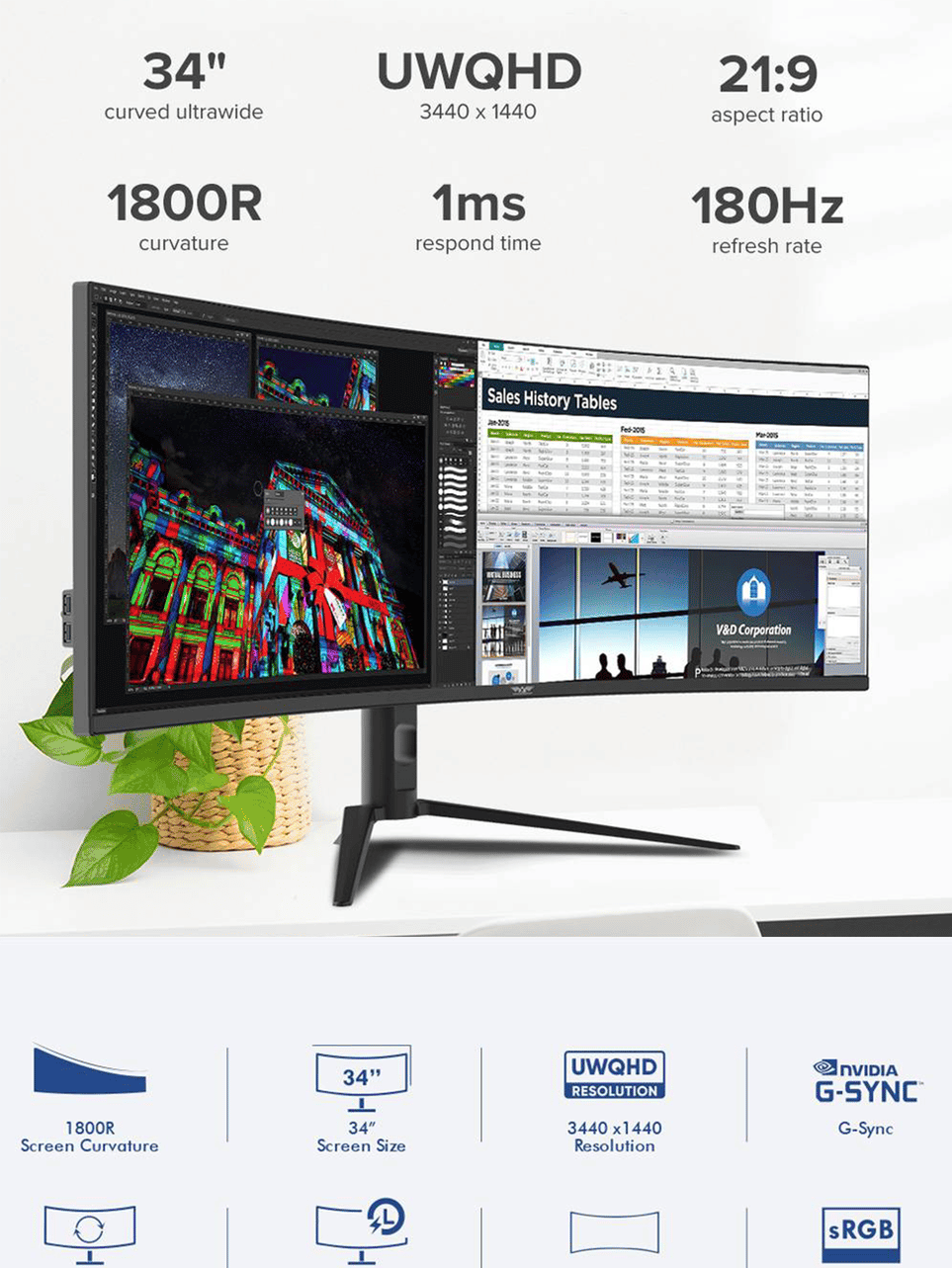 • 34'' 3440 x 1440 (UWQHD) @ 180Hz