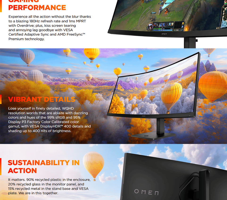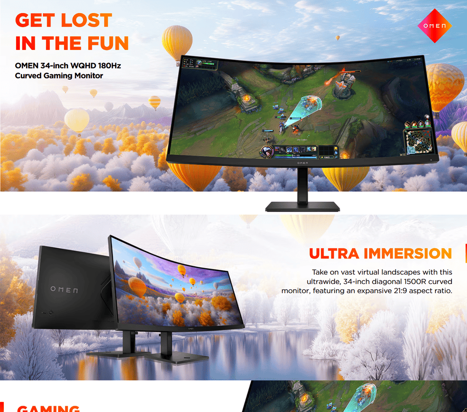 HP OMEN 34c G2 34" WQHD VA 180Hz Curved Gaming Monitor ( DP, HDMI, 3 Yrs Wrty )