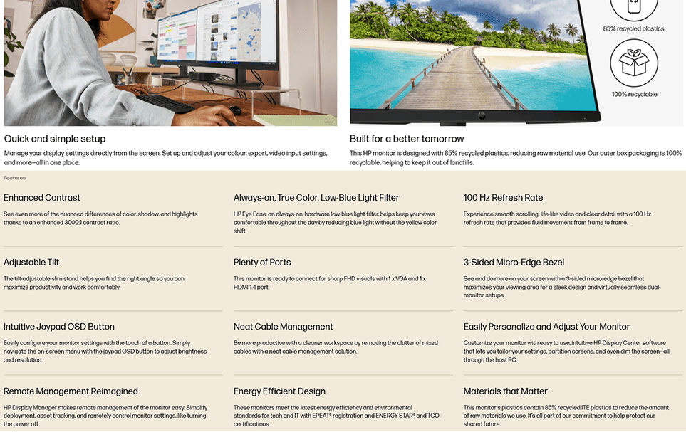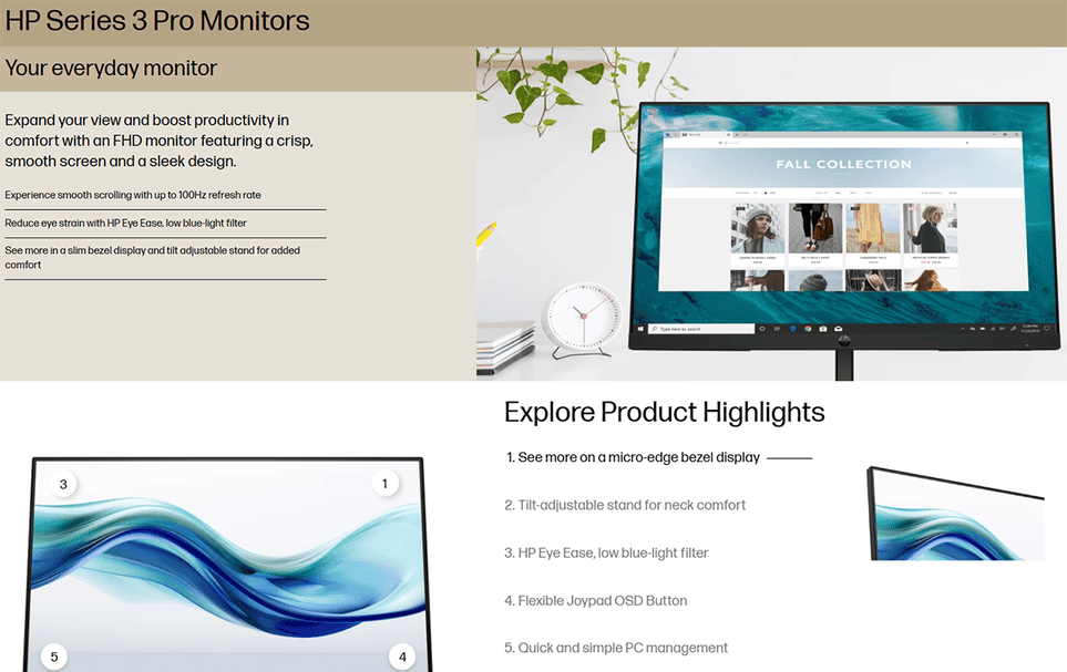 HP Series 3 Pro 324PV 23.8" FHD VA 100Hz Monitor ( VGA, HDMI, 3 Yrs Wrty )
