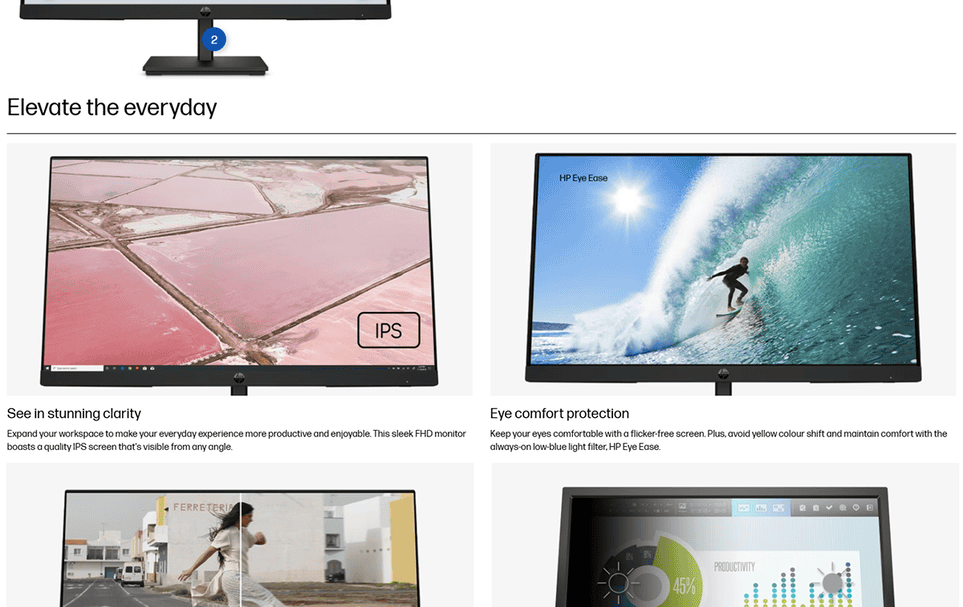 Display features : Anti-glare; HP Eye Ease; Tilt