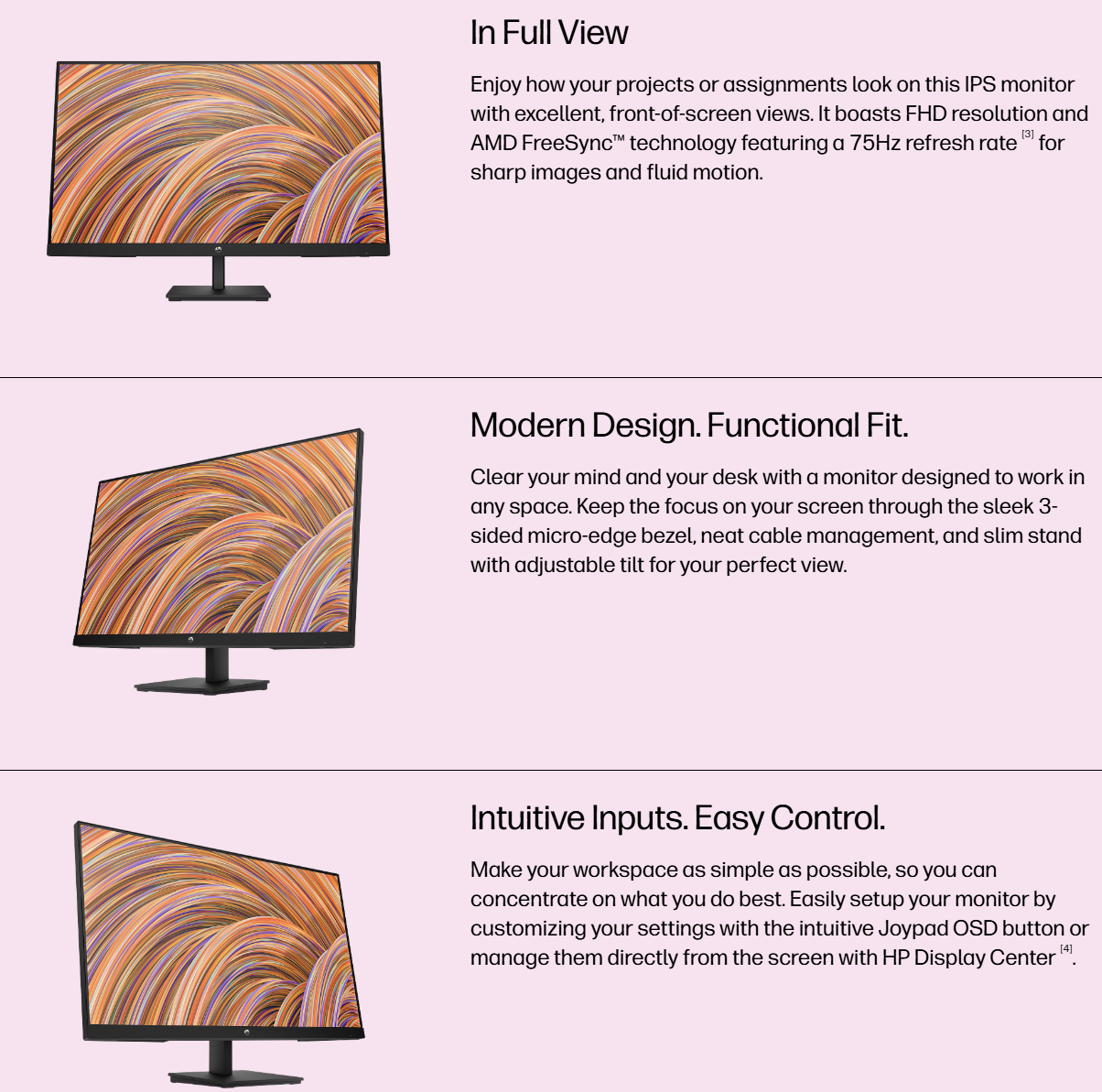 HP V27i G5 27" FHD 75Hz Monitor (VGA, HDMI, 3 Years Warranty)