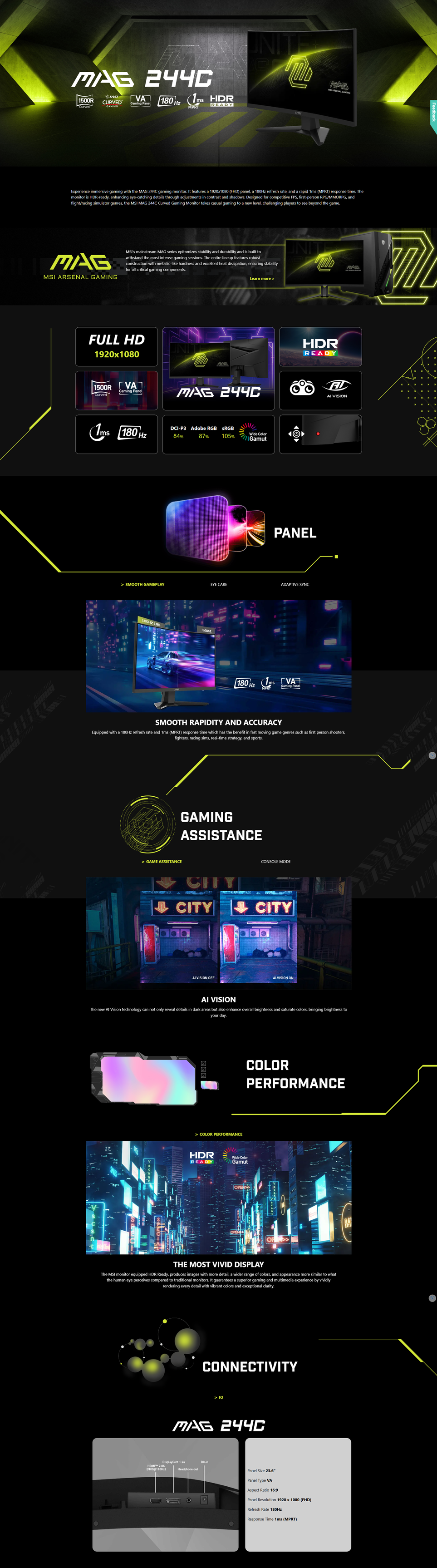 MSI MAG 244C 23.6" FHD 180Hz Curved Gaming Monitor ( HDMI, DisplayPort, 3Yrs Warranty )