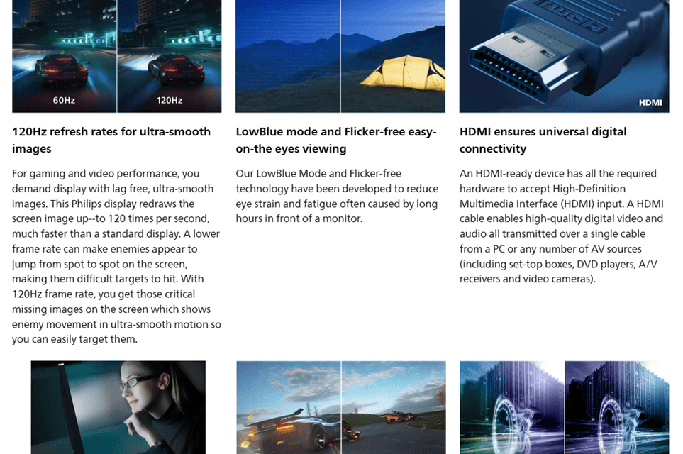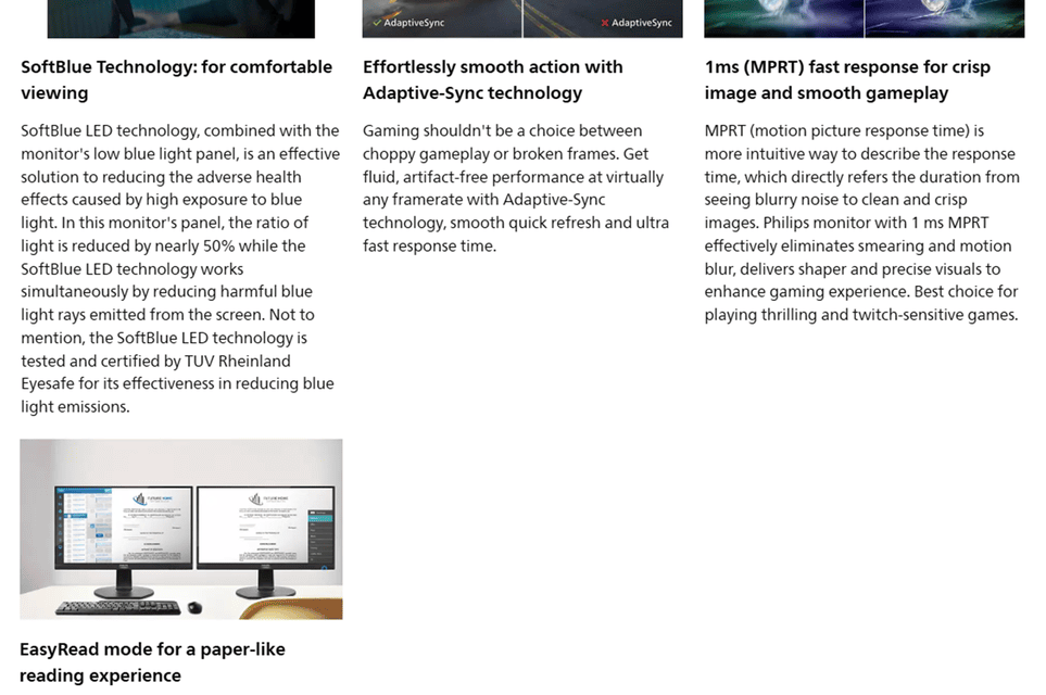 • Response Time (Typical): 4ms (Gray to Gray)*, 1ms (MPRT)