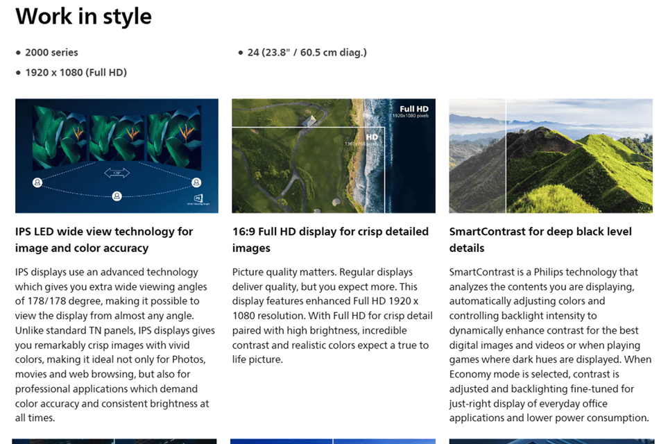 23.8" FHD 1920 x 1080 @ 120 Hz, Color gamut (typical) :