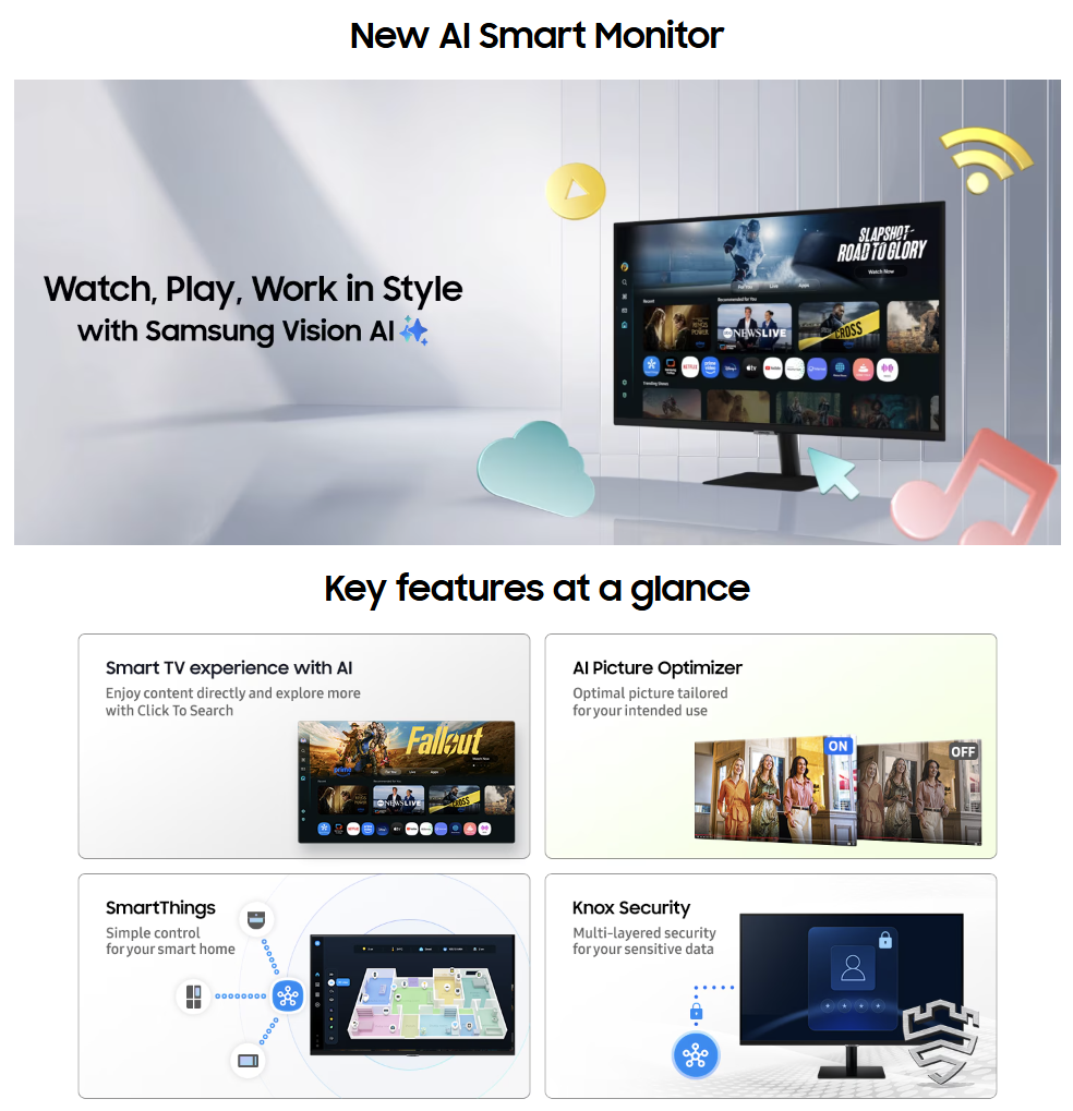 Samsung M8 M80F AI LS32FM803UEXXS 32" 4K 60Hz VA Smart Monitor ( HDMI, USB-C, USB Hub, 3 Yrs Wrty )