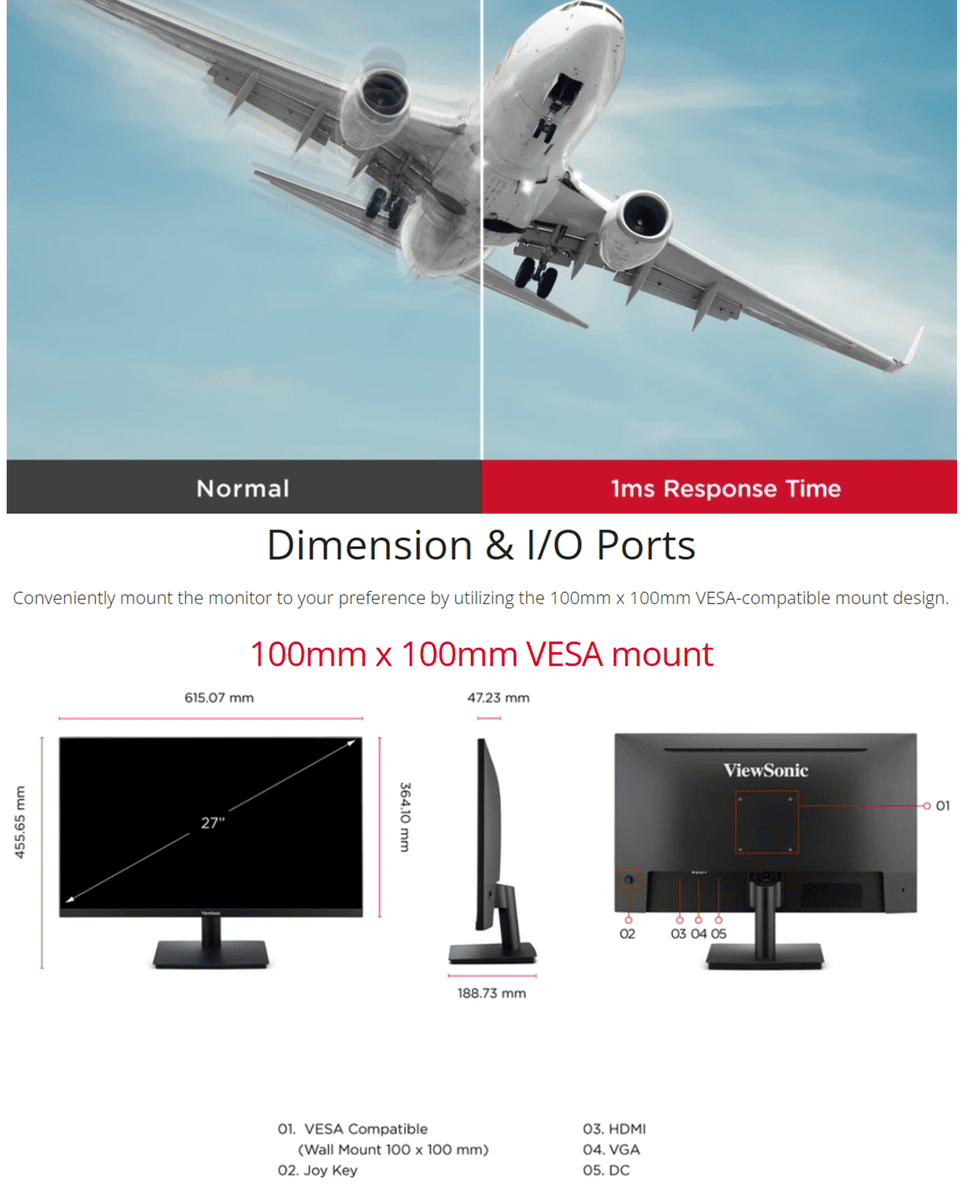 ViewSonic VA270-H-2 27" FHD IPS 100Hz Flat Monitor ( HDMI, VGA, 3 Yrs Wrty )