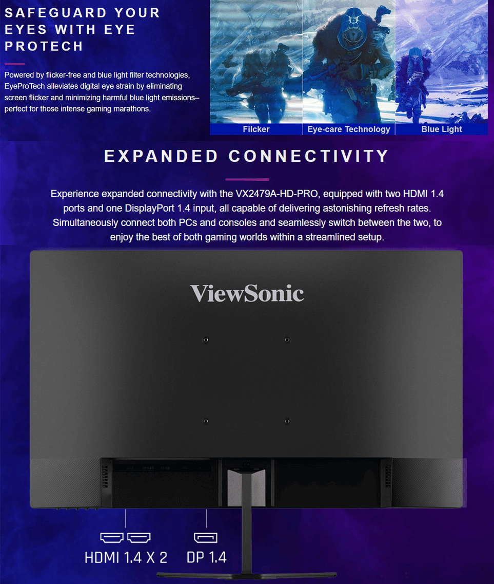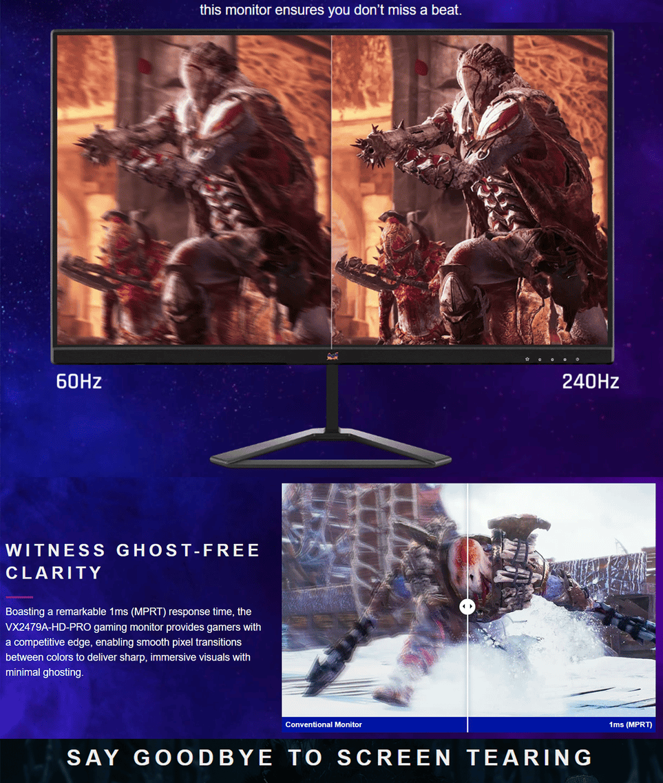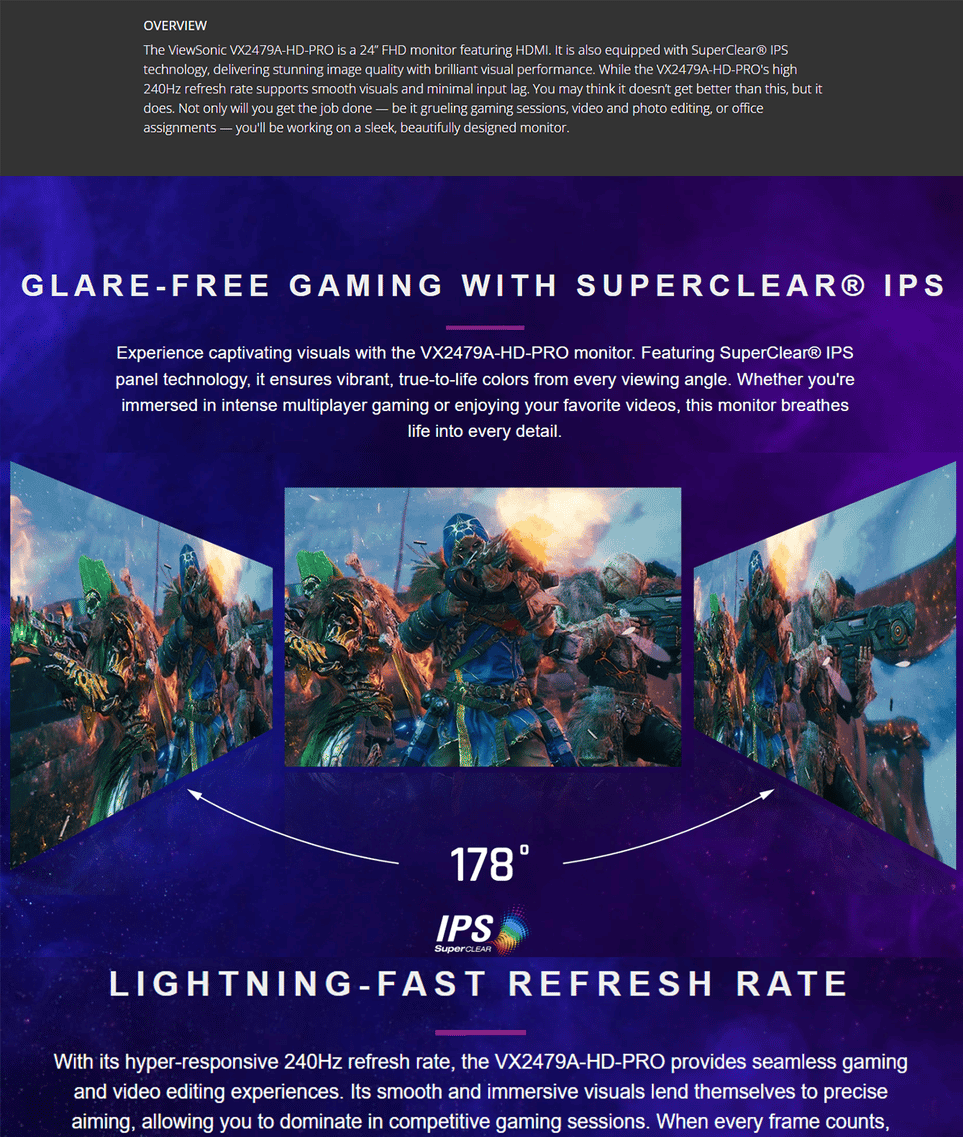 ViewSonic VX2479A-HD-PRO 24" FHD 240Hz Gaming Monitor ( HDMI, DP, 3 Yrs Wrty )
