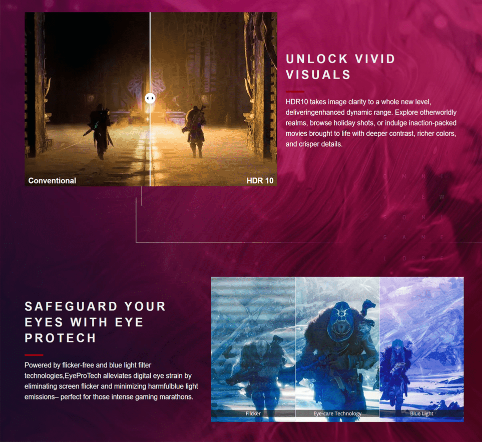 • VESA mountable/ ViewMode technology/ NTSC: 72%/ Anti-Glare
