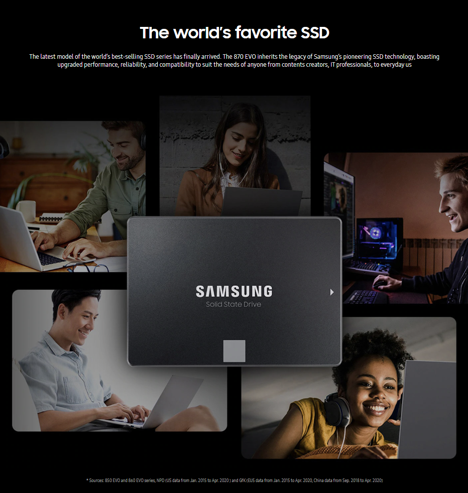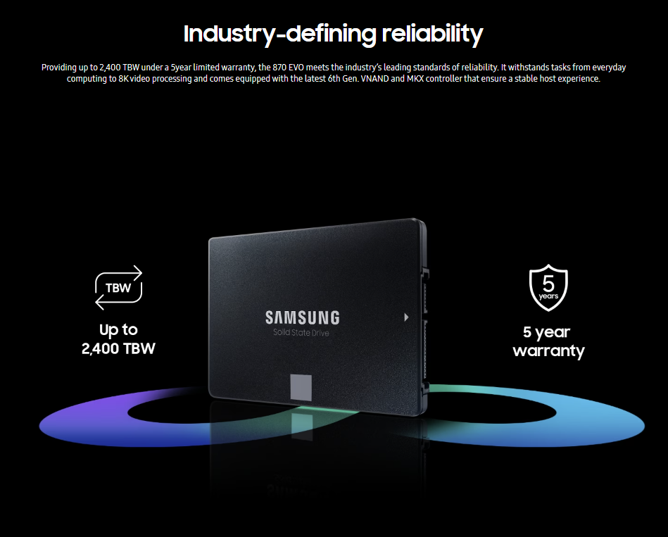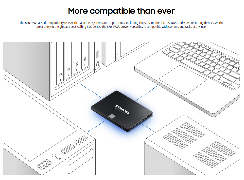 Samsung 870 EVO SATA 2.5" SSD (500GB, 1TB, 2TB)