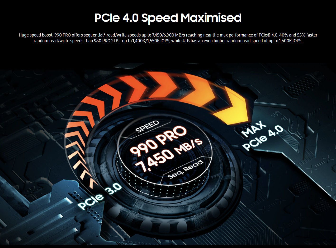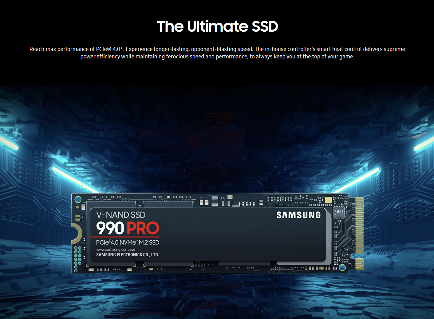 • Samsung 990 PRO NVMe M.2 PCIe 4.0 SSD (1TB, 2TB)0